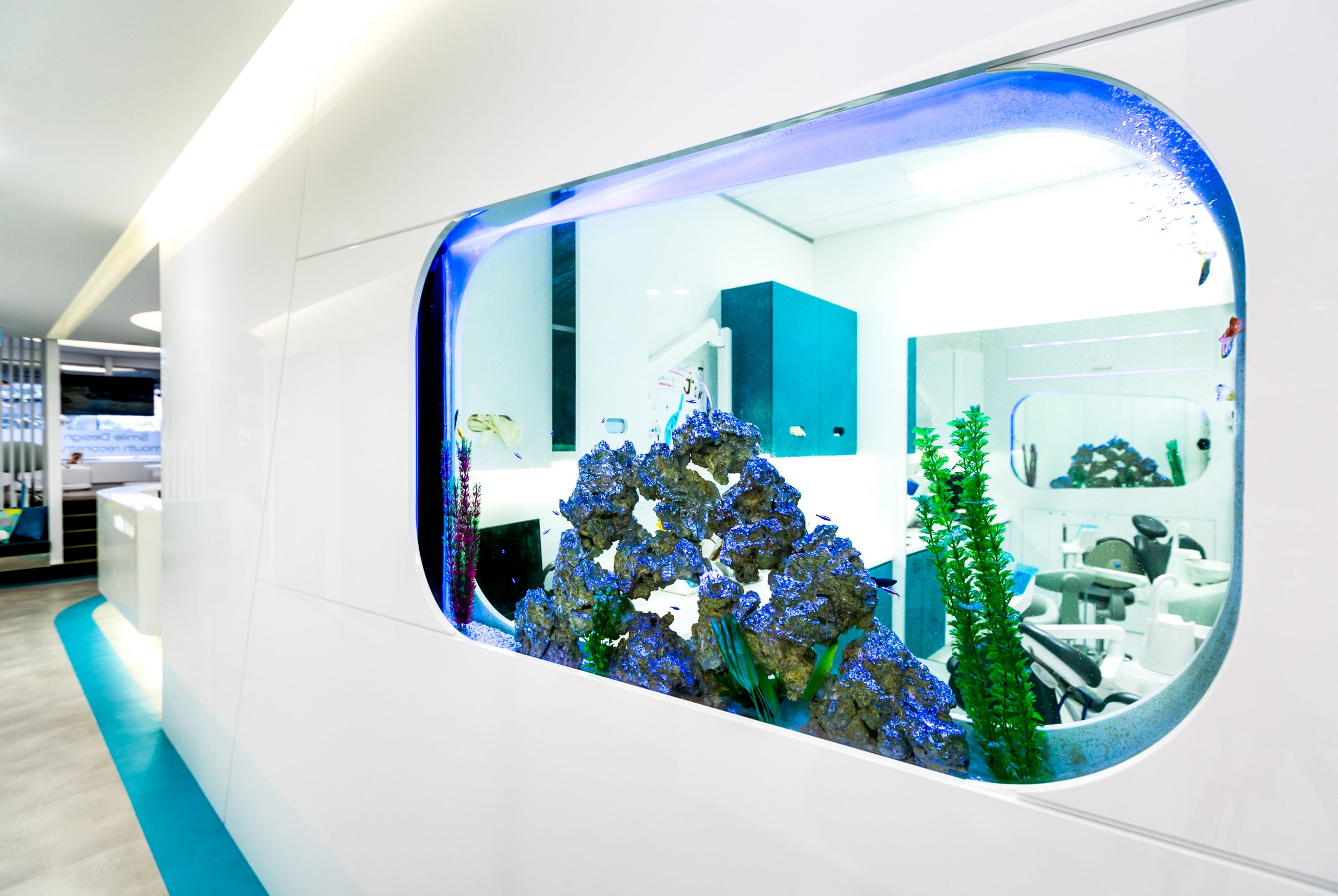 Smile By Design is a statement of a high-end practice owned and managed by the principal dentist, Dr Michael Tam. The design detailing throughout the space, with the introduction of fish tanks on the walls and stone tops at the waiting area and surgeries, makes the space anxiety-free and welcoming for patients.